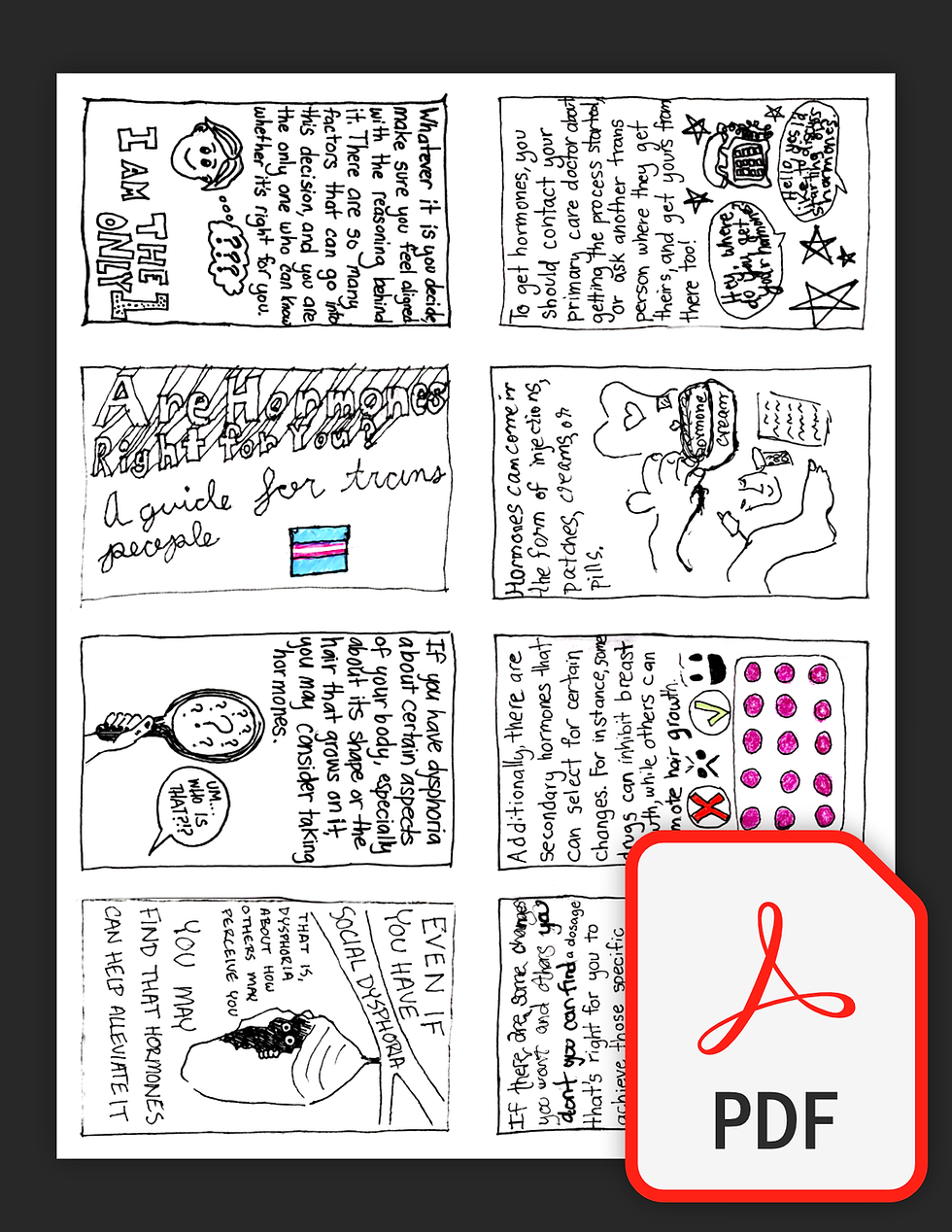 The new 2024 Edition of the zine features improved content and some updated design, including fixed links, added tips for supporting trans people, and a new back cover illustration!
